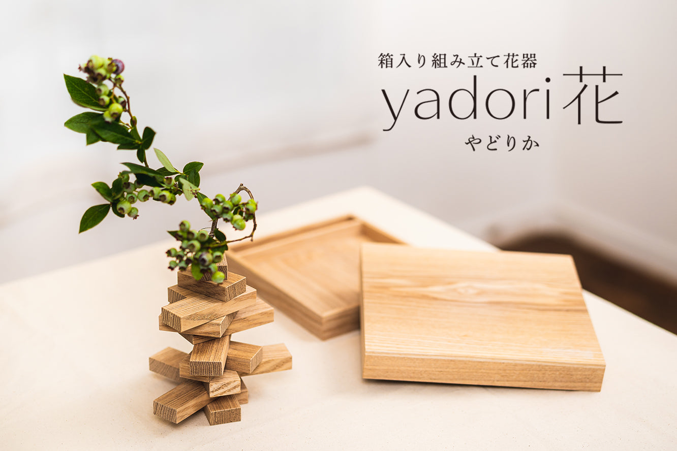 『yadori 花(やどりか)』は宮大工さんの木工の技と、漆職人さんの熟練した塗りの技術、デザインの力を合わせて作った、組み立て式の花器です。生ける花やその日の気分、飾る場所によって 積み木のように簡単で、自由な組み替えが可能です。組み立ての工程も、お花を生けるようにお楽しみください。